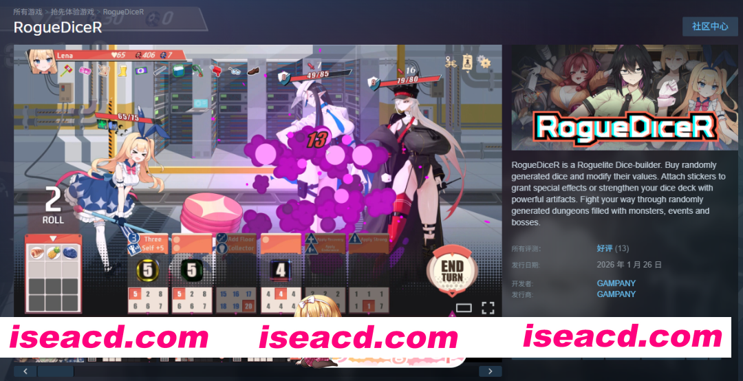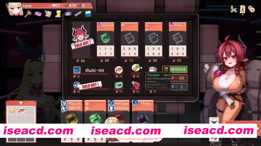 -在商店购买属性随机生成的骰子。 -通过改造增加骰面的数值,贴上贴纸(竟然能贴2张!)赋予特殊效果,或者利用遗物来强化整个骰组。 在随机生成的地牢中,击败各路怪物,打倒那些(也许)能化敌为友、助你冒险一臂之力的Boss们。 -兔女郎、奶昔史莱姆、忍者还有魔法少女,都会向你发起攻击。 -说话语气、行动模式,甚至连“画风”都各不相同的角色们,将向你攻击或发起对话。 操控拥有专属遗物效果的各种角色,展开战略战斗。 -用你喜爱的角色探索地牢,构筑独一无二的骰组吧。