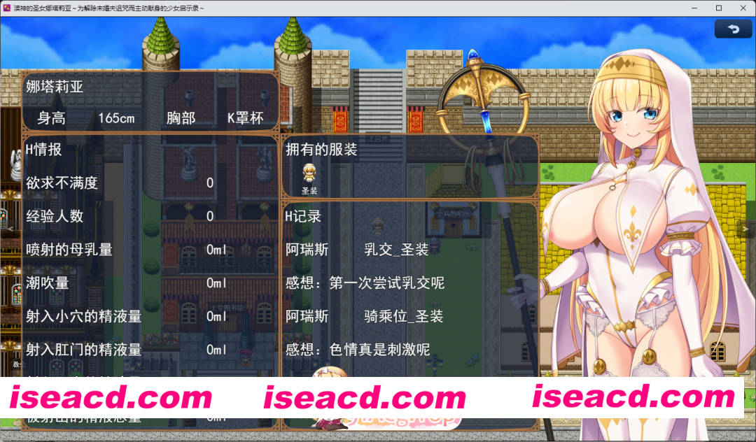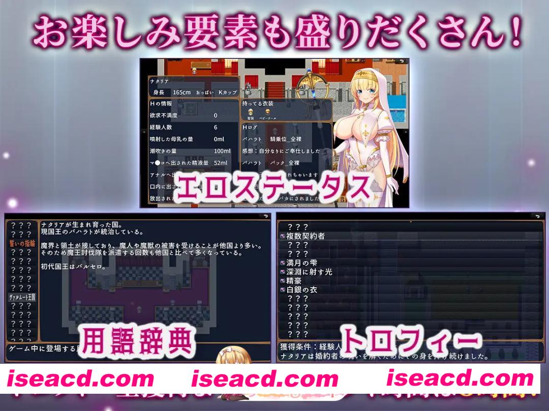 本作是一款ADV游戏,讲述的是圣女娜塔莉亚通过允许男人们对她做色色的事情作为交换,