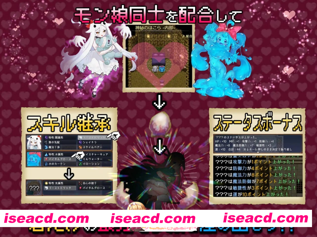给魔物娘喂食肉类,让她们成为伙伴,通过融合创造出新的魔物娘,并不断强化她们 —— 这款正统魔物娘 RPG 终于登场了……!!