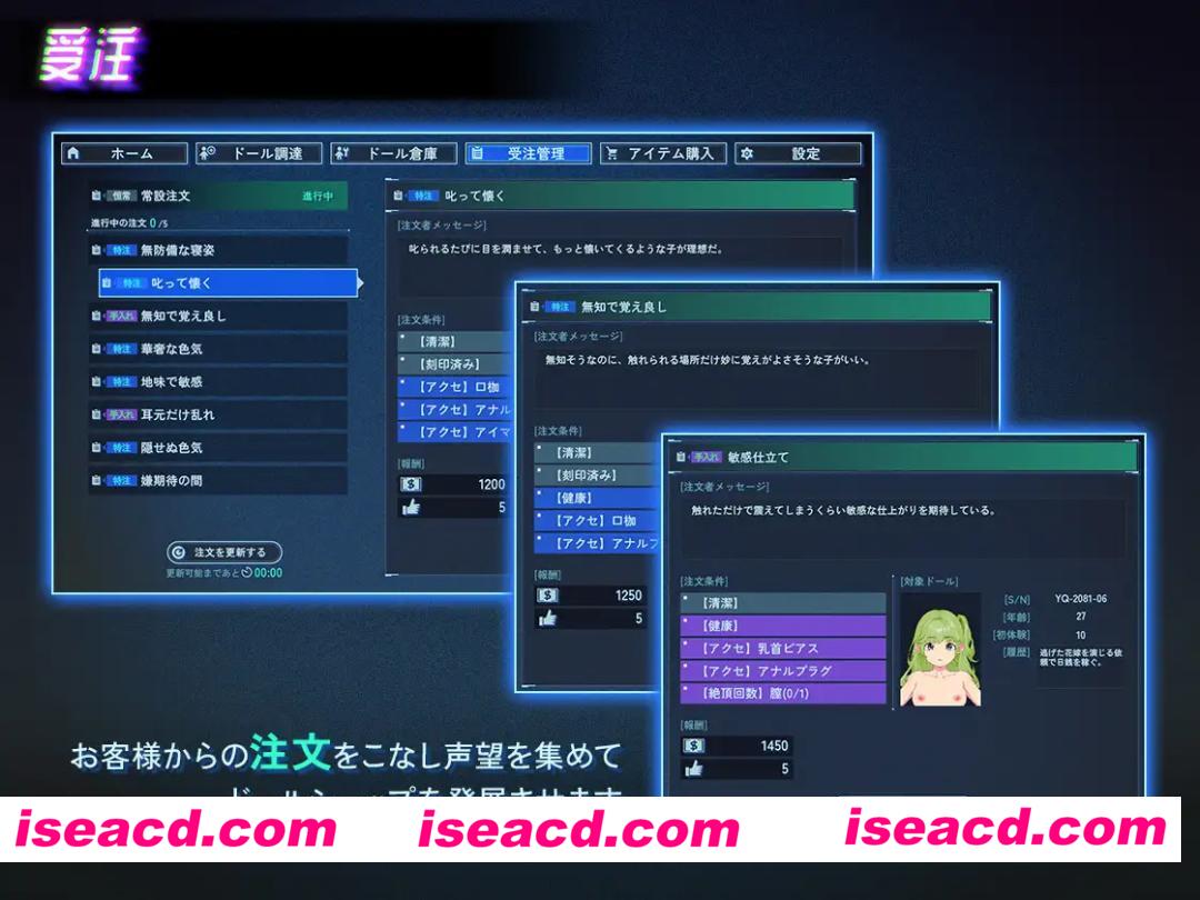 游戏简介: 这是一款什么样的游戏? 你扮演一位在“地下城”一隅经营着一家“人偶商店”的店主。 然而,这里所经营的“人偶”并非由塑料或布料制成。 在街上捡到的少女、拐来的离家出走的孩子—— 你将她们强行清洗干净,刻上条形码,经过“加工”后作为“商品”出货。 这是一款描绘如此黑暗且背德世界观的经营模拟游戏。 游戏特色 每次都有不同的少女登场:通过随机生成系统,每次游玩都能迎来新的邂逅。 经营与情色元素的融合:在扩大人偶商店规模的同时,还能享受各种“加工”的乐趣。