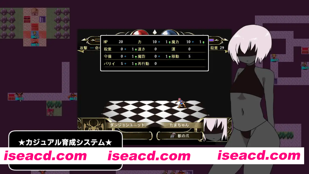 作品内容 单人旅途类 Roguelike 策略角色扮演游戏 @从冥界逃脱,随机生成地牢的单人旅途 Roguelike 策略角色扮演游戏! 结合多种职业与随机装备,征服迷宫吧! @可携带物品开局 21种职业转换 + 38张H皮肤,全部解锁开启! @使用喜欢的职业和喜欢的皮肤,来享受你的单人旅途吧★ 剑士 重骑士 魔道士 狙击手 双剑士 忍者 突击骑士 武僧 巨人剑士 盗贼 狂战士 魔女 咒术师 恶魔 猫 精英史莱姆 死神骑士 龙骑兵 魔像 莉莉丝 僵尸 更新信息 2025年11月13日 内容追加 v1.3 新增”撒旦”难度,并全面调整了所有难度以提升可玩性 2025年10月26日 内容追加 v1.2 调整了职业技能,新增了敌人配置、机关谜题和道具商店 2025年10月25日 内容追加 新增了敌人技能 + 4种难度