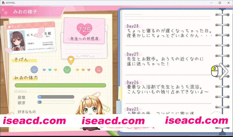 社团名:#PICOPICOSOFT 贩卖日:2025年04月25日 0点 标签:#精品,动态,同居,触摸,抚摸 游戏概要 《两人同居》是一款面向成人的同居生活 SLG·ADV 游戏, 讲述了因故投靠”你”的亲戚少女美绪共同生活的故事。 角色介绍 美桜(みお) CV:小波すず 因宿舍火灾为契机开始与”你”同居的女孩。 性格内向且就读女校的缘故,尚未有过恋爱经历。 初恋也未曾有过。当然是处女。 目前还未找到能热衷的兴趣爱好。 是个与你共同生活的纯真无暇、如白纸般的女孩。 玩法说明 主要分为两种玩法: 通过对话和触摸增进与美绪亲密度”生活模式”, 以及点击触摸各部位的”触摸模式”。 休息日可在家玩游戏,或前往各种场所约会。 全屏模式+全语音的 H 场景也很多 ・哺乳手交 ・早晨出门前穿着制服的美绪在厨房站立后入 ・肛交 ・早安口交 ・牵手正常位 ・乳交 ・夜晚公园露天性爱 ・自慰 ・让不懂足交的美绪尝试足交 ・工作中欲火难耐要求发送色情自拍 ・约会后回家路上忍不住在暗处让她手淫射精 ・电车里对穿制服的美绪…兴奋的痴○游戏 ・婚礼 与穿婚纱的新娘在休息室…也有相当激烈的色情场景 ・用窥阴器检查处女膜 直接对着窥阴器撑开的处女阴道子宫内射 ・清理包皮垢深喉 ・让美绪骑脸 ・浴室放置跳蛋连续高潮 虽然不是色情但温馨场景也有很多 ・浴室偶遇 ・洗手间偶遇 ・水族馆约会 ・偶然撞见换衣服 ・游乐园约会坐摩天轮 ・两人共浴 ・照顾感冒的美绪 用湿毛巾擦拭后背 ・在咖啡厅露台互相喂食芭菲 ・路边摊吃关东煮 ・一起玩卡牌游戏 ・宅物商店购物 除此之外还有很多 因为数量多才让人开心 ■ 更新履历 v1.60 内容追加 ・场景No.70「线香花火」 ・场景No.71「纪念摄影!」 ・满足条件后与美绪的触摸对话中新增○×游戏(三子棋) ・场景No.72「捏脸颊」 ・场景No.73「夜晚的教室」 ・场景No.74「夜晚的教室H」 ・场景No.45「可疑的保健品」中新增美绪更加缩小的场景 ・回家路线新增玄关口交迷你事件 ・触摸互动中脱下的内衣(胸罩/内裤)会显示在画面上 其他调整 ・细微动作及文本修正 ・新增事件对应日记文本扩充 ・为后续追加内容进行的内部调整 ■ 更新履历 v1.633 ・ 触摸互动部分仰躺姿势时,因蘑菇图标导致的异常触碰判定问题 ・ 修正触摸互动部分中,口内射精时画面显示异常的问题 ・ 修正平日”绕道”事件购买避孕套时,作为赠品获得物品后获取标记未能正常更新的问题 ・ 其他细节修正 资源下载下载价格VIP专享仅限VIP下载升级VIP立即购买 常见问题 解压密码错误?点击查看》PS:如果提示密码错误,推荐使用Bandizip解压或修改后缀为zip 有些人是因为解压密码复制错误,请手动扩选解压密码,不要直接点复制。