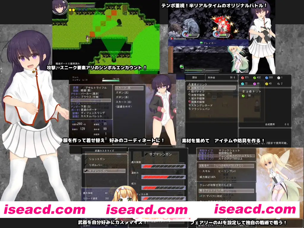 社团名 せきらら 发售日 2015年07月31日 更新信息 2015年08月05日 年龄指定 R18 作品形式 角色扮演、有音乐 分类 女主人公, 换装, 精灵,妖精, 奇幻, 羞辱, 处女 ■故事 在天使与恶魔相互争斗的世界里,众多种族在天使的庇护下共存。 本作讲述的是生活在其中的人类少女克蕾哈的内心挣扎与成长故事。 ■战斗系统 战斗为注重爽快感与节奏的半即时制战斗。 融入了弹数限制、破防量表等原创要素。 ■AI 系统 可为同行的妖精设定行动条件与技能,使其按照你的战术提供支援。 ■换装系统 可自由搭配制作或获得的服装。 造型会反映在战斗立绘中,且服装会因受到伤害而逐渐破损。 只有主角克蕾哈可获取服装。 ■基础成人 CG 共 21 张。 ※成人场景以凌辱系为主,同时包含少量卖淫类合意性交及百合场景。 此外还包含产卵、触手、亚人少女、妖精等元素,敬请留意。