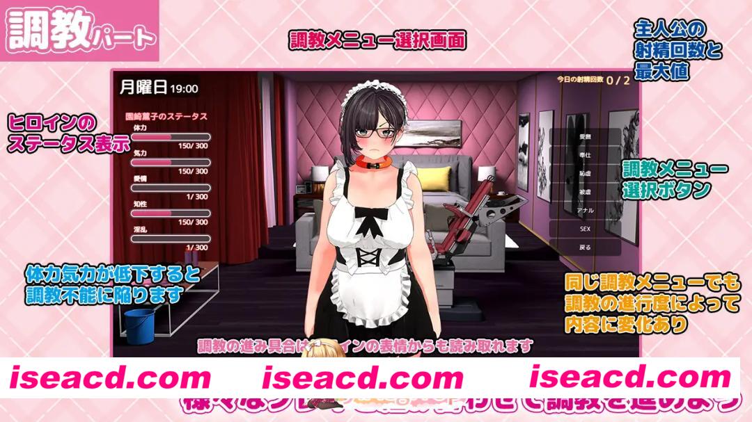 故事概要 主人公"我"因遭受来自同班同学的惨烈欺凌而拒绝上学。 原本应该成为主人公伙伴的班主任园崎薰子,却对此类欺凌视而不见,甚至站在了加害者一方,参与了对主人公的欺凌。 在有着反社会势力联系的叔父的协助下,主人公控制了园崎薰子。为了消除因欺凌而被植入的心理创伤,主人公将薰子置于软禁状态,亲手对她进行"调教",以此完成"复仇"…… 游戏内容 这是一款模拟主人公"我"与被调教成专属女仆的原班主任"园崎薰子"在公寓中共同生活的游戏。 在一般的模拟游戏中,随着进程会逐步解锁更激烈的玩法,能做的事情会越来越多;但本游戏从一开始就可以选择所有玩法。 无需循序渐进,从第一天起就可以进行灌肠、拳交等激烈玩法。 当然,也可以循序渐进地慢慢调教她。 除此之外,在日常生活中,还可以让她在洗澡时为你搓背、上厕所时帮你处理下身、为你按摩肩膀、掏耳朵、做夜宵、甚至让她以原教师的身份担任家庭教师——作为专属女仆,她将全方位支持你的生活。 玩家还可以指定她的服装,可选服装包括:"束缚"、"全裸"、"束缚装"、"女仆装"、"紧身裙" 共5种。 每种服装都设有不同的状态值,根据服装的不同,体力与气力的恢复程度也会有所变化(如果想要彻底逼紧她,可以让她一整天都穿着"束缚"装;如果目标是恢复体力,则可以让她穿"紧身裙"等)。 你可以选择向曾经将自己逼入绝境的对象彻底复仇,也可以选择温柔对待她以提升好感度。 游戏模拟了两人在密室中的二人生活。